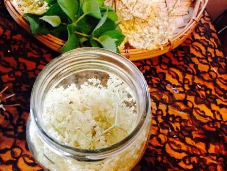Elder Flowers (Sambucus canadensis) contain enough natural yeast to make a "wild fermentation." This brew is just Elder Flowers, local raw honey, lemons, and water! Just be sure not to wash your fresh Elder Flower, as it will wash off the beneficial microbes that make fermenting with these particular flowers so easy!