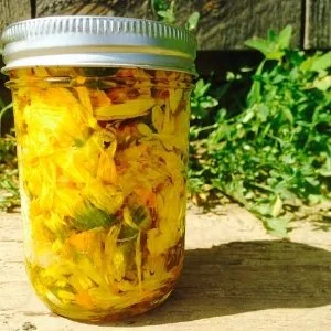 Calendula in olive oil. Oils are great base preparations that may then be used to make salves, creams, body butters, salt or sugar scrubs, or just used on their own. Calendula is an amazing wound healer, as well as an anti-microbial and anti-septic, and makes a fabulous all-purpose salve
